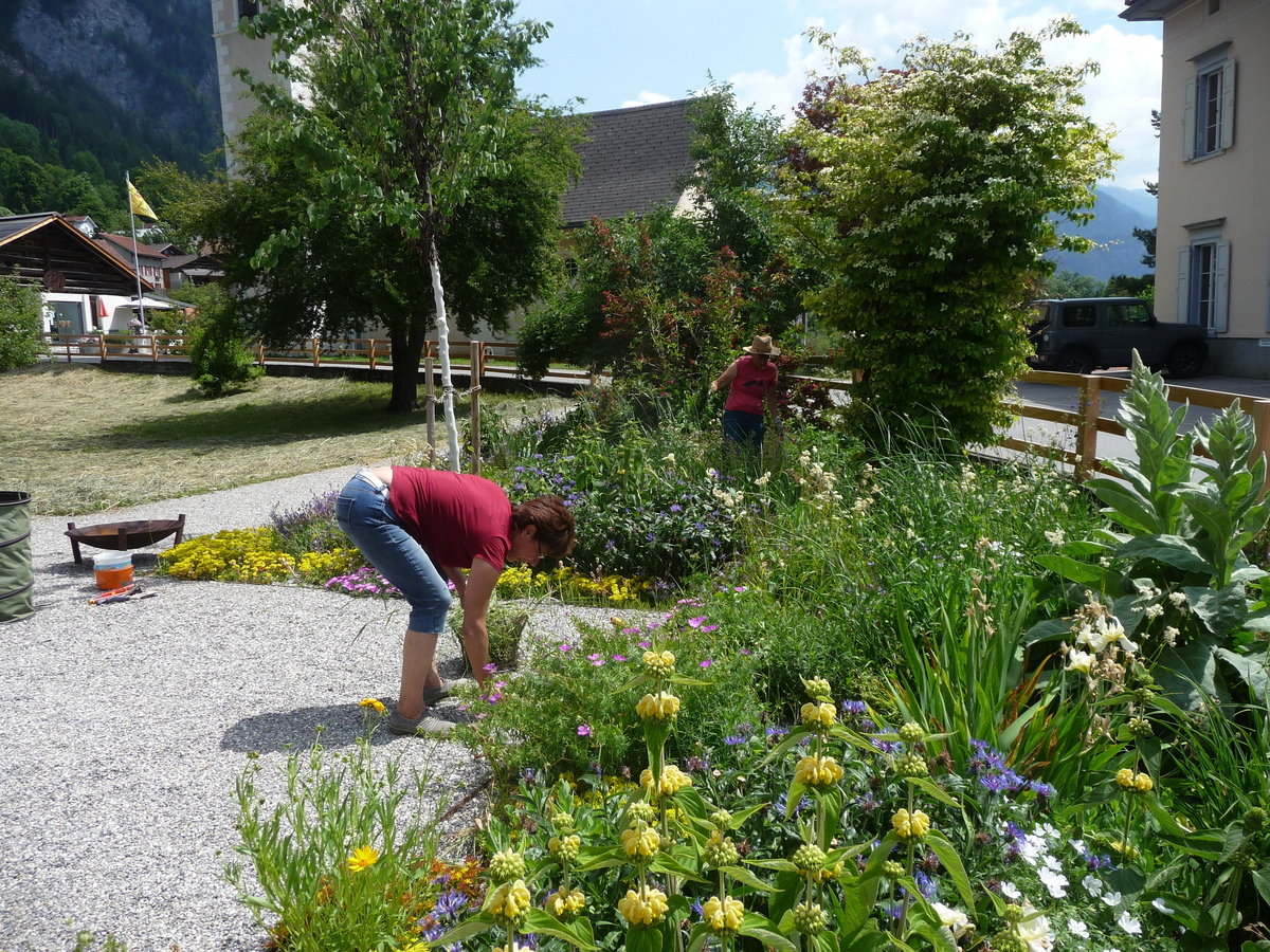 Es blüht wunderschön im Garten des Kirchgemeindehauses Almens. Doch bei genauerem Hinsehen erkennt man die vielen unerwünschten Pflanzen wie Quecke, Spitzwegerich und Winden, denen es heute anlässlich einer Aktion von «Kirche Mitanand» an den Kragen ging. «So was unverschämtes», meinte die eine von uns zu der Wicke, die den Weigelienbusch zu erdrücken schien. Ob das wohl die von ihr gespendete Pfingstrose sein, wunderte sich die andere der fleissigen Helferinnen. So verging die Zeit miteinander plaudernd wie im Flug und der Berg für die Grünabfuhr wuchs ansehnlich an.