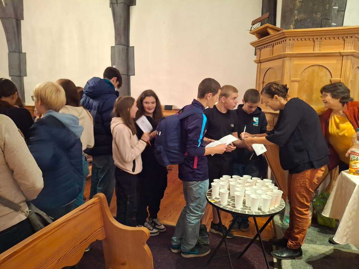In der vollbesetzten Kirche in Scheid fand der Begrüssungsgottesdienst für die Konfirmanden 2027 statt. Pfrn. Peppina Schmid und Pfr. Thomas Ruf haben die neuen Konfirmanden begrüsst und freuen sich, sie die nächsten drei Jahre auf die Konfirmation vorzubereiten. Antje Bachmann vom Vorstand (Ressortleiterin Bildung) hat den neuen Konfirmanden eine Bibel überreicht. Anschliessend gab es einen kleinen Apero für alle in der Kirche.