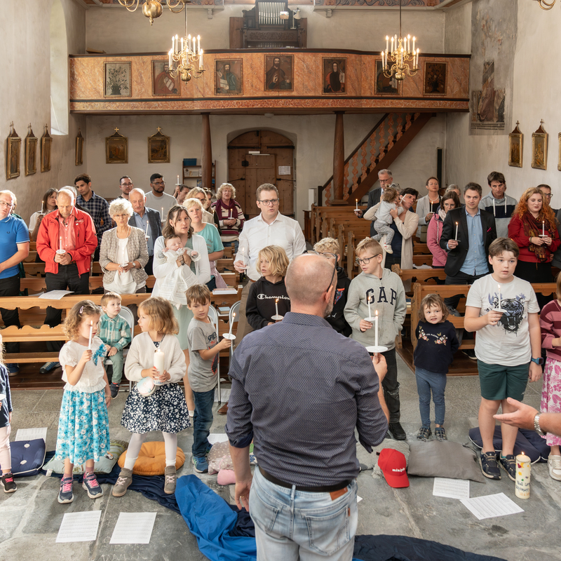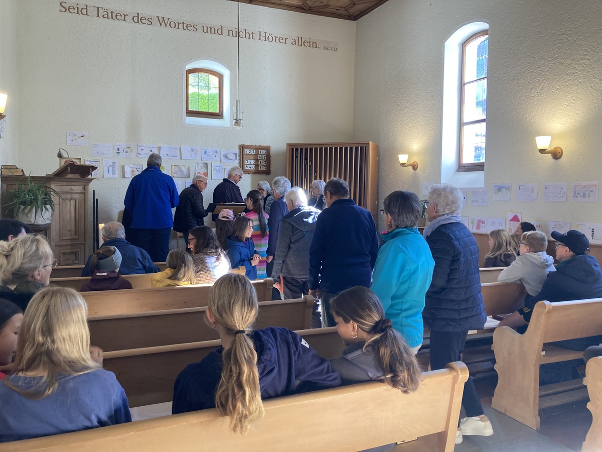 Viermal im Jahr feiern wir ökumenisch, d.h. gemeinsam mit unseren katholischen Glaubensgeschwistern auf ganz einfache und anschauliche Weise Gottesdienst. Besonders ansprechend für Kinder bis in die ersten Primarschulklassen.