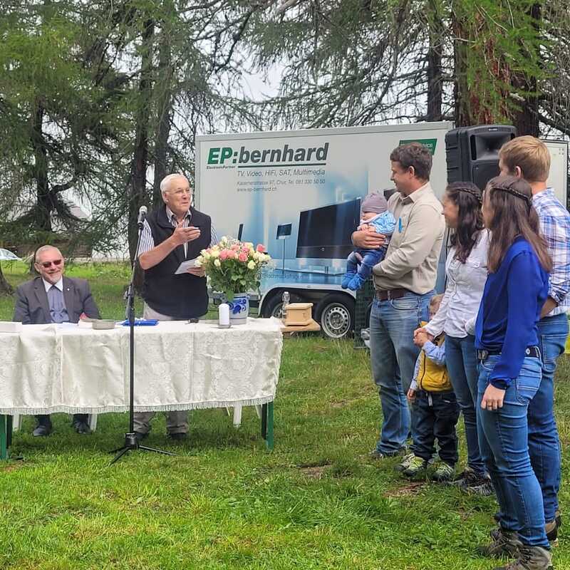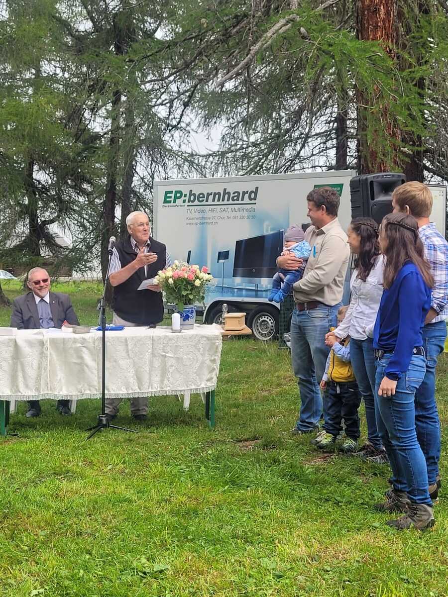 Bei durchzogenem Wetter fand am 30. Juli in Plaun dils mats ein ökumenischer Gottesdienst mit Pfr. Peter Miksch und Pfr. Luzi Battaglia statt. Dabei wurden Leandra Raguth Tscharner und Jonin Kunfermann durch die Taufe in die Gemeinschaft aufgenommen. Die Kapelle via Spluga hat den Anlass musikalisch umrahmt und die Landfrauen Scheid waren für Speis und Trank besorgt. Auch die Oldtimertraktoren haben den Weg nach Plaun dils mats unter die Räder genommen. Da der Anlass im 2019 (Regen) und 2021 (Corona und Regen) nicht stattfinden konnte, war dies wieder einmal ein sehr schöner Anlass, der bis in die Abendstunden genossen wurde.