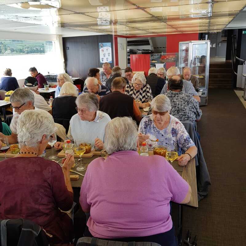 Um 7.00 Uhr fahren 40 Personen inkl. Kirchgemeindevorstand mit Rosmarie von Christoffel Carreisen mit Kaffeehalt an den Bodensee und besteigen am unteren Ende des Bodensees das Schiff – auf dem wir auch zu Mitttag esssen. Wir lassen uns auf der bezaubernden Strecke: Seerhein-Untersee, vorbei an der Insel Reichenau und idyllischen Ortschaften auf dem Rhein zum Munot nach Schaffhausen tragen. Von dort geht es nach einem Stadbummel und kleinem Stärkungs-Halt unterwegs- wieder ins Domleschg zurück.