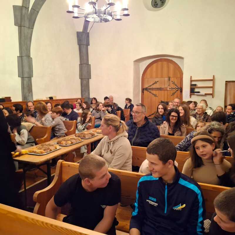 Am 23. Dezember fand die Familienweihnachtsfeier in Scheid statt. Annalies Battaglia hat mit den Kindern von Scheid Lieder und eine kurze Geschichte eingeübt und Pfr. Thomas Ruf hat den feierlichen Gottesdienst mit einigen Worten umrahmt. Anschliessend gab es für alle Kinder einen Grittibänz, welchen einige schon während dem Gottesdienst probierten.