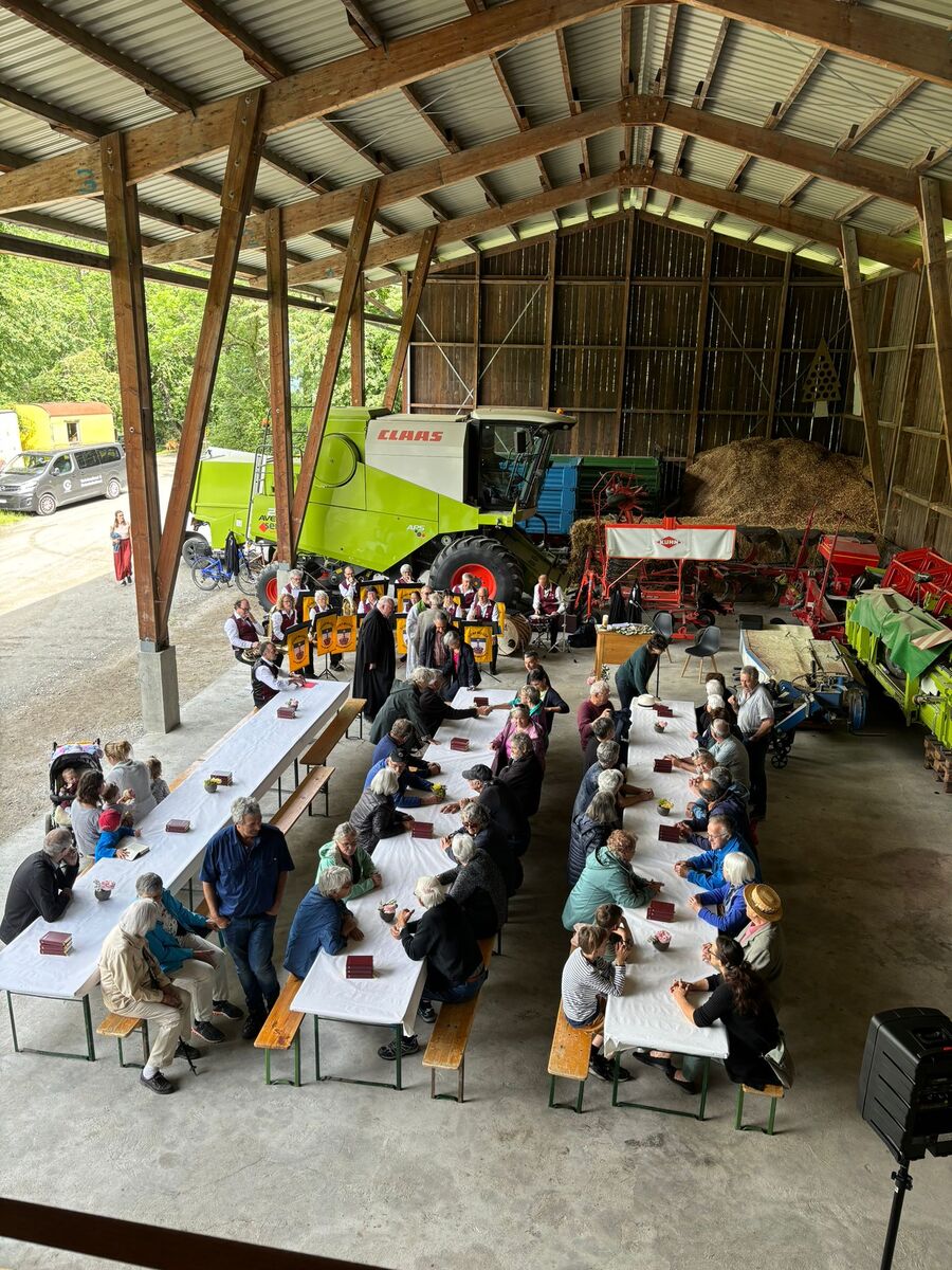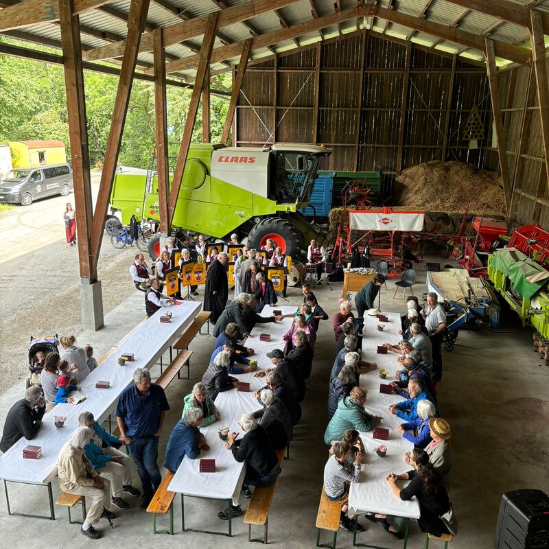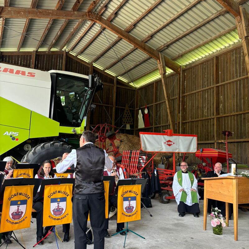 Anstelle vom Schützenhaus Tomils, fand der ökumenische Gottesdienst dieses Jahr in der Remise beim Hof Obrecht statt. Dies vor allem aus wettertechnischer Sicht. Die Dorfmusik Rothenbrunnen umrahmte den von Pfr. Thomas Ruf und Pfr. Peter Miksch geleiteten Gottedienst musikalisch. Unter der Leitung von Ursina Tscharner (Ressort Gemeindeleben) wurden alle reichlich bewirtet. Besten Dank allen, die freiwillig mitgeholfen haben.