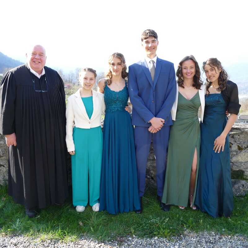 Pfr. Thomas Ruf, Merline Maeder, Nina Kunfermann, Cian Sherlock, Gina Eugster, Noe Streiff.