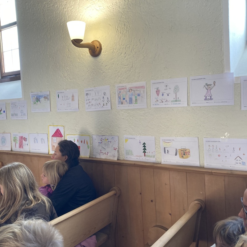 Familien-Festgottesdienst mit Abendmahl in der gut besetzten Kirche Rothenbrunnen. Auf den Zeichnungen haben die Schüler mitgeteilt, wofür Sie in Ihrem Leben dankbar sind. Anschliessend haben die guten Seelen von Rothenbrunnen die Kirchgemeindemitglieder mit einer feinen Kürbis- und/oder Gerstensuppe, sowie Kaffee und Kuchen verwöhnt.